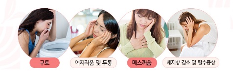 구토는 1일 4~10회 달하고 식욕은 떨어지게 되고 체중도 줄게 된다.