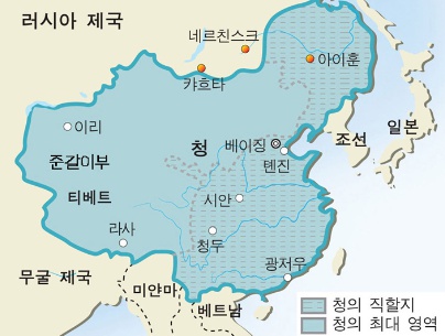 1644년에는 민주족이 중국을 침략하여 청나라를 세웠는데 이 왕조는 1911년까지 존속하였다. 만주족은 외래 민족이었지만 중국 문화의 여러 부분들을 받아들였다. 그 중에는 새로운 유교와 명나라의 정치 체제가 있었다.
