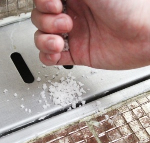 하수구가 막혔을때 굵은 소금을 한주먹 넣고 뜨거운 물을 부어주면 잘 뚫린다고 합니다.