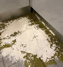 바닥에 식용류를 엎질렀을땐 밀가루를 뿌려주면 밀가루가 식용류 기름을 흡수해 한결 청소가 편하다고 합니다.