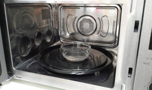 그릇에 뜨거운 물을 담아 전자레인지에 2분~3분 정도 돌리면 수증기가 생겨 전자레인지 청소하기가 편하다고 합니다.