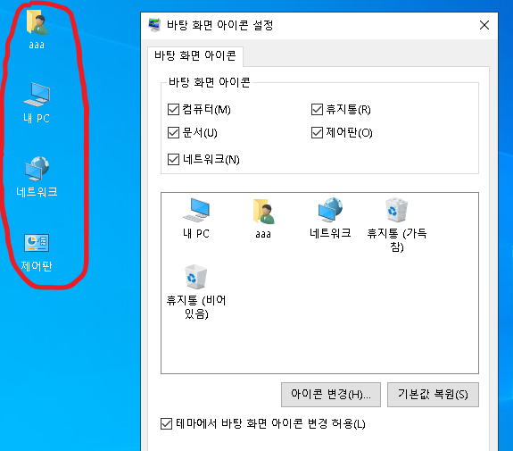 윈도우 10 바탕화면 아이콘 설정하는 방법