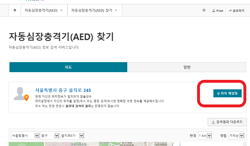 갑자기 인도나 도로에서 사고 등으로 자동심장 충격기가 필요시 검색으로 위치를 알수가 있습니다.
