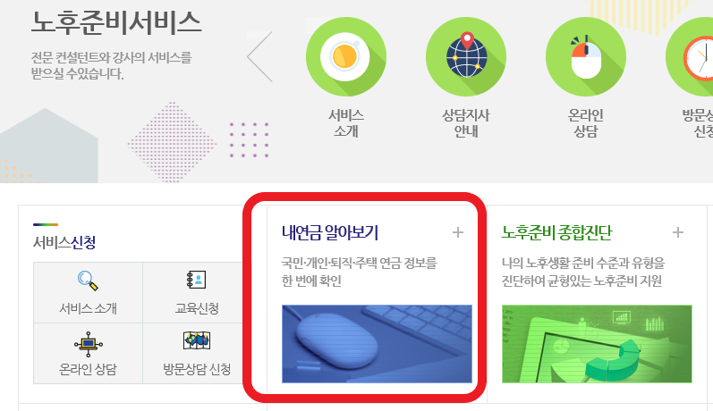 2. 홈페이를 내려가다 보면 내연금알아보기가 보이실 겁니다 그곳을 클릭해 줍니다.