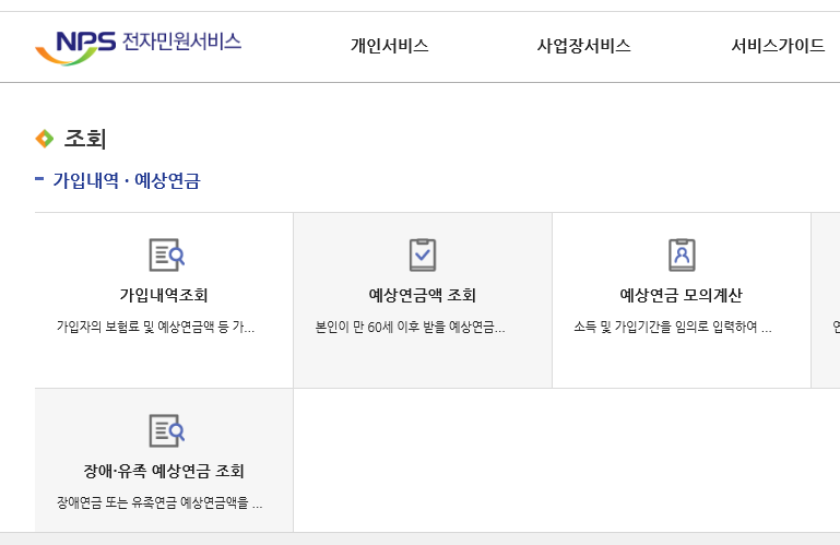 지금까지 낸 국민연금도 알아보실수 있습니다. 자신이 얼만큼 내었으며 조건이 충족되면 얼마나 받을수 있는지 예상금액도 확인해 볼수 있습니다.