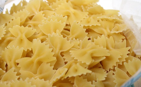 나비 모양 또는 나비 넥타이 모양을 한 파스타 면이며 이탈리아어로 나비를 뜻한다고 합니다. 또한 양쪽은 톱니 모양과 중앙부분이 식감의 특징이며 샐러드나 크림소스와 잘 어울린다고 합니다.
